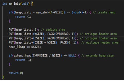 따라서 힙의 크기를 늘려주는 extend_heap 함수도 따로 구현해 줘야 한다.