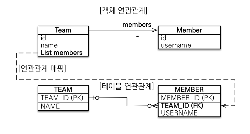 객체와 테이블의 차이 때문에 외래 키를 반대편 테이블이 관리하게 되는 특이한 구조가 됐다. -_-