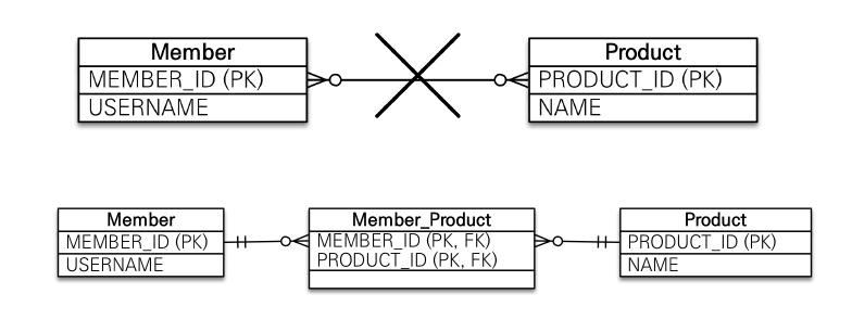 데이터베이스 테이블을 설계할 때는 어차피 다대다 관계를 풀기 위해 테이블을 하나 도입한다.