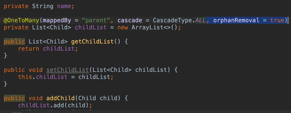 @OneToMany 애너테이션에 orphanRemoval 속성을 조작해서 설정하고, 반드시 참조하는 곳이 하나일 경우만 사용해야 한다.