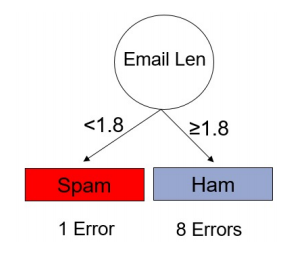 이메일의 길이를 기준으로 스팸인지 아닌지 결정하는 Decision Tree 형식으로 질문을 만든다.