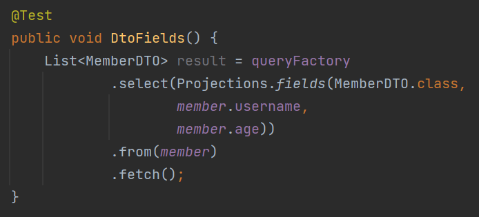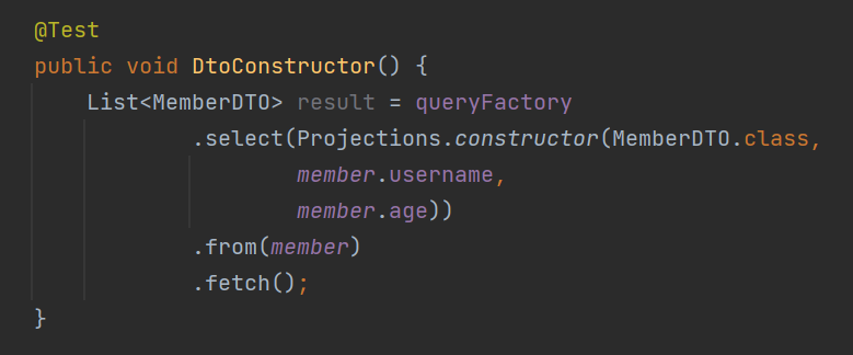 @QueryProjection을 사용하게 되면 MemberDTO에 QueryDSL 기술에 대한 의존성이 생기게 되는 단점도 있으니... 애플리케이션 설계 시 이 부분도 고려하도록 하자.