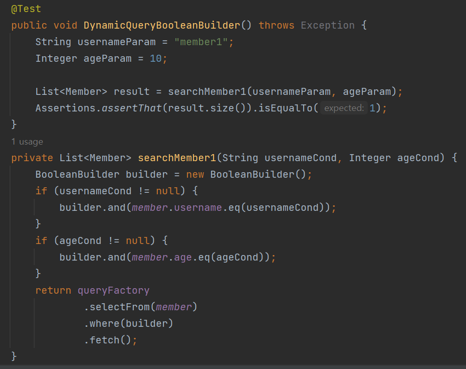 QueryDSL에서는 동적 쿼리를 두 가지 방법으로 제공한다. 모두 살펴보자.