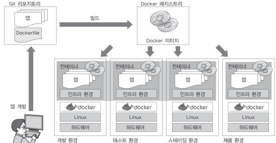 이미지를 템플릿으로 컨테이너를 생성하고, 인프라 환경을 컨테이너로 관리한다.