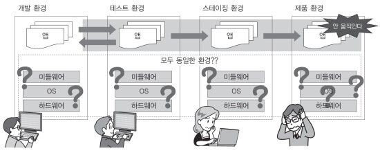 컨테이너 기술을 사용하지 않으면 여러 애플리케이션들이 같은 시스템 리소스를 사용하기 때문에 미들웨어나 라이브러리의 버전이 다른 경우는 각 애플리케이션이 서로 영향받을 수 있다.
