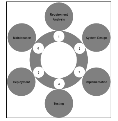 요구 사항 분석 -> 설계 -> 구현 -> 테스트 -> 유지보수