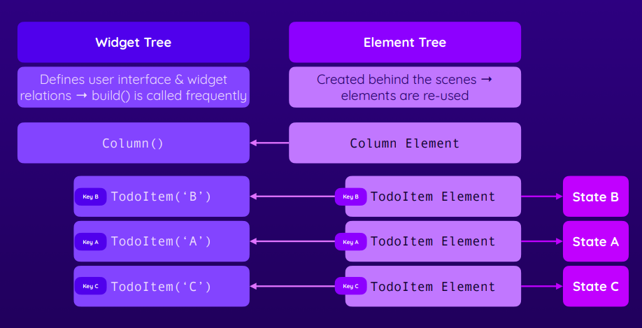 엘리먼트가 위젯의 상태를 제대로 관리하기 위해 위젯을 구분하는 키가 도입됐다.