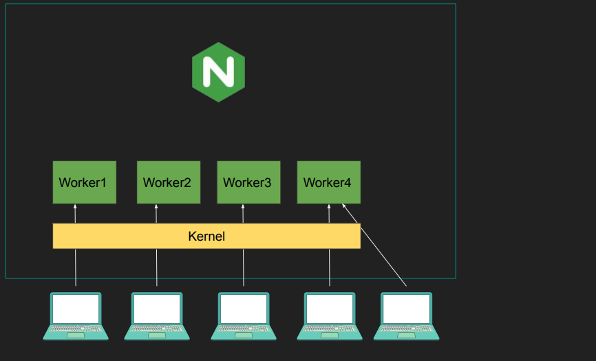 이런 아키텍처와 비동기, 이벤트 기반 처리 방식으로 엔진엑스는 효율적으로 대규모 트래픽을 관리한다.