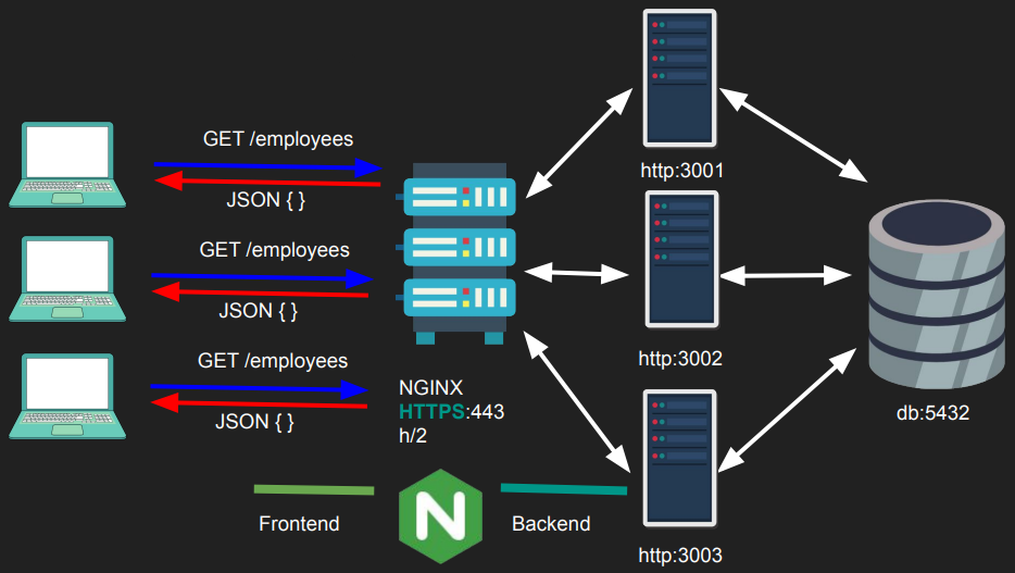 이 부분에서 엔진엑스가 개입해 목적지를 조작하고 적절한 백엔드 서버로 요청을 넘겨주는 방식으로 사용한다.