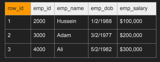 사용자가 테이블을 정의할 때 row_id 라는 컬럼을 지정하지 않았지만 데이터베이스가 내부적으로 row_id를 컬럼을 만들고 각 row을 식별할 때 사용한다.
