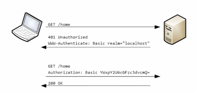 클라이언트는 서버로 접속 시 Base64 방식으로 username과 password를 인코딩하고 Authorization 헤더에 포함시킨다.