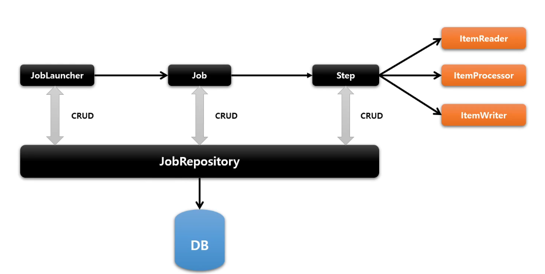 JobLauncher, Job, Step은 JobRepository를 통해 CRUD 작업을 수행한다.
