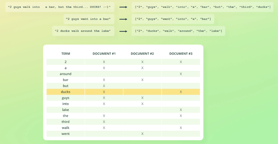 Document가 인덱싱 될 때는 해당 Document의 텍스트 필드가 analyze되고, tokenize 된 결과는 역색인 구조로 저장된다.