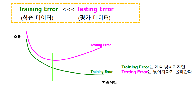 초록색 경계선 이후부터 Overfitting 문제가 발생했다.