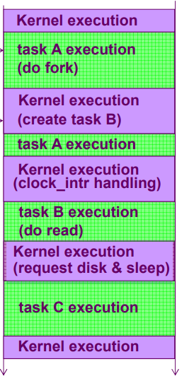 프로세스에게 할당된 시간이 끝나거나 시스템 콜을 수행해야 하는 경우 커널 모드로 전환해 다른 프로세스를 할당하거나 시스템 콜을 수행한다.