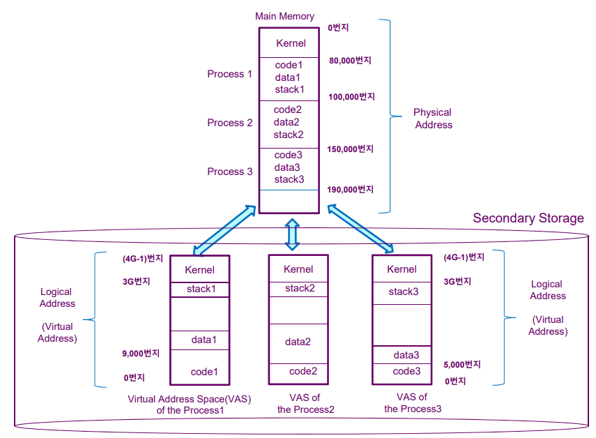 CPU는 Virtual Address Space에 있는 프로그램을 실행할 수는 없다. 그냥 프로세스 이미지를 보관하는 용도라고 생각하자.