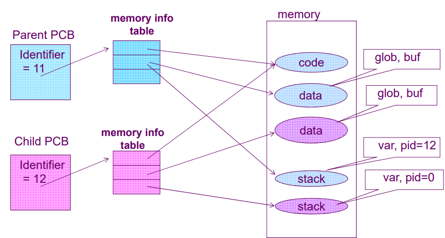 fork 시 부모 프로세스의 메모리 공간이 자식 프로세스에게 복사되지만, 서로는 완전히 독립적인 프로세스임에 집중하자.
