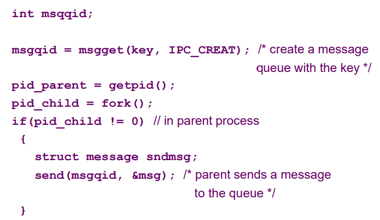 먼저 운영체제에게 메세지 큐를 만들어달라고 요청하고 자식 프로세스를 생성한다.