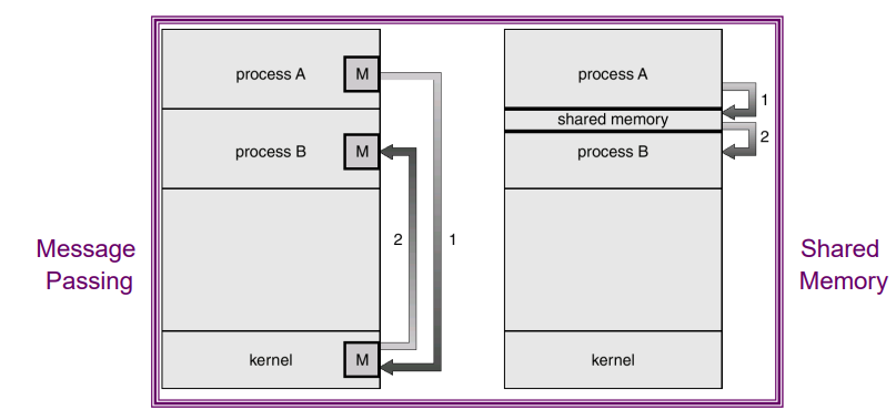 프로세스 A가 커널을 통해 B에게 메세지를 전달하면, 이후 프로세스 B가 실행될 때 커널을 통해 자신에게 도착한 메세지를 받아서 처리한다.