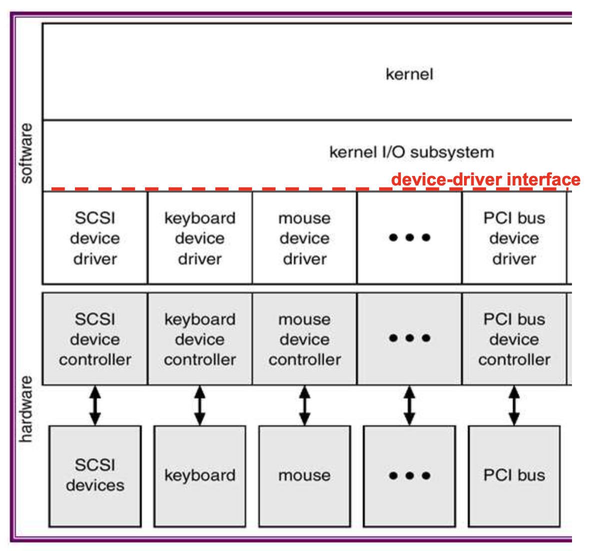 드라이버와 커널 간의 통신은 device-driver interface를 통해 이루어진다.