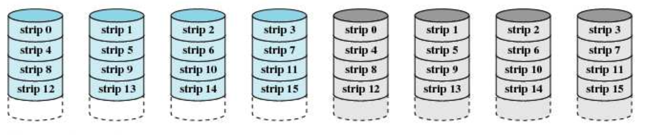 strip이라는 정보 단위를 저장하고, 각 strip은 여러 디스크에 분산되어 저장된다.