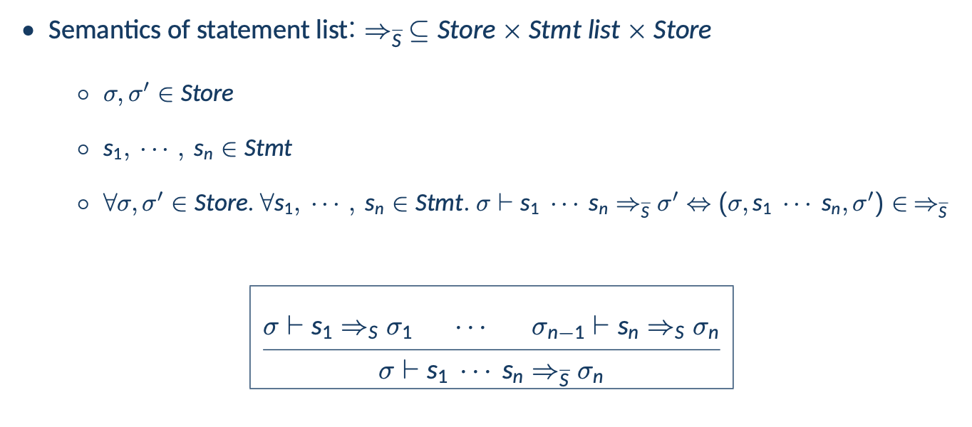 Statement List를 계산하는 보조 Semantic Relation고 Formal Semantics만 자세하게 살펴보자.