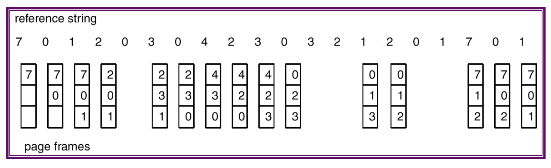 Reference String은 프로그램이 실행되면서 접근하는 주소들의 Page번호만 시간 순서대로 나열한 부분이다.