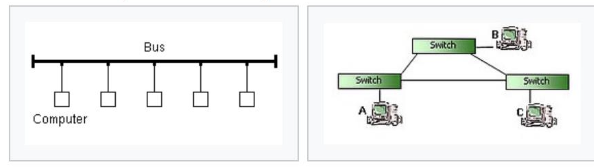 초기 이더넷은 버스 형태로 하나의 동축 케이블에 여러 장치가 연결되는데, 충돌이 많고 확장성이 떨어진다.