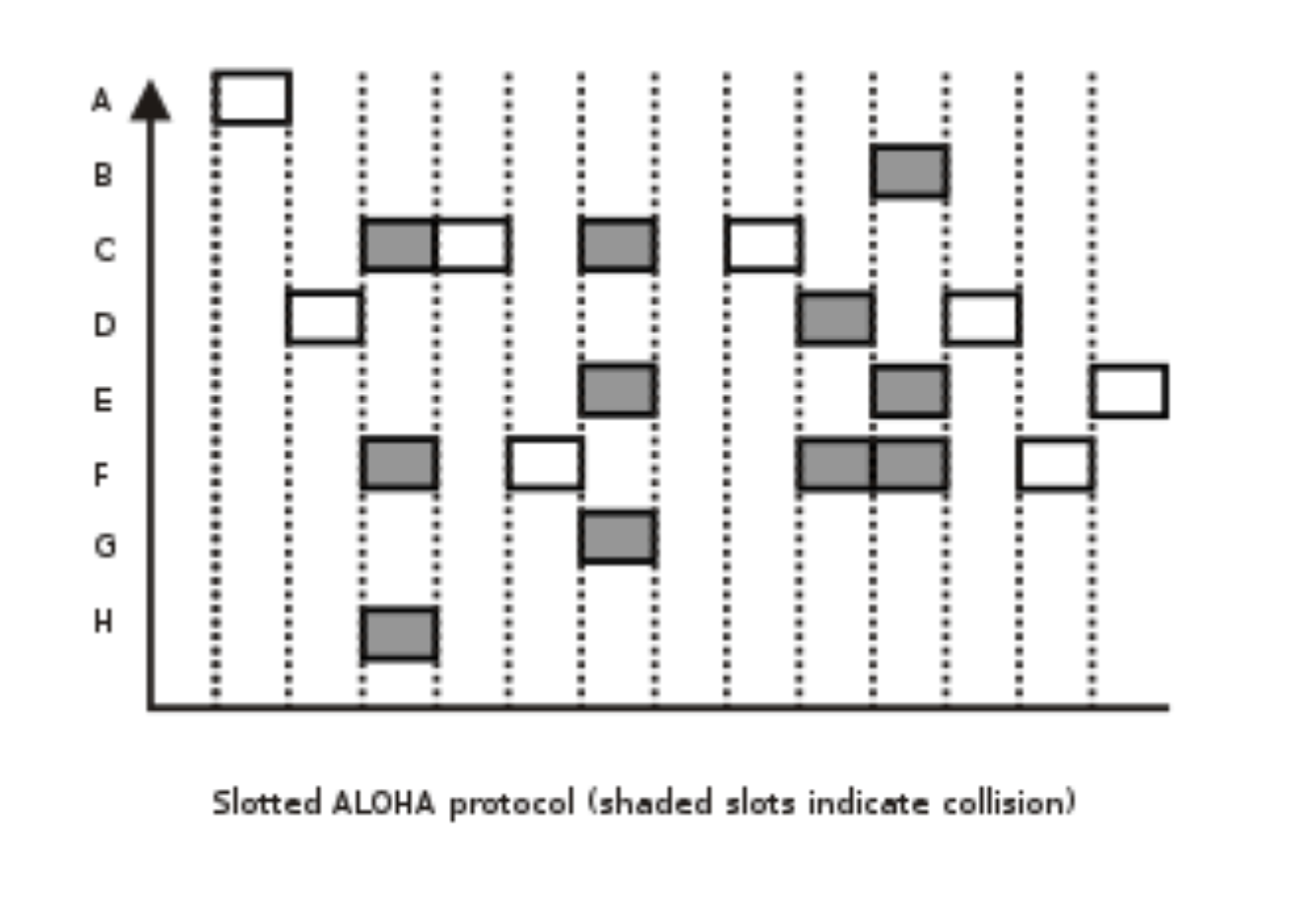 시간이 동기화되니까 슬롯 시작점에만 전송을 허용하고 충돌 확률이 절반으로 감소한다.