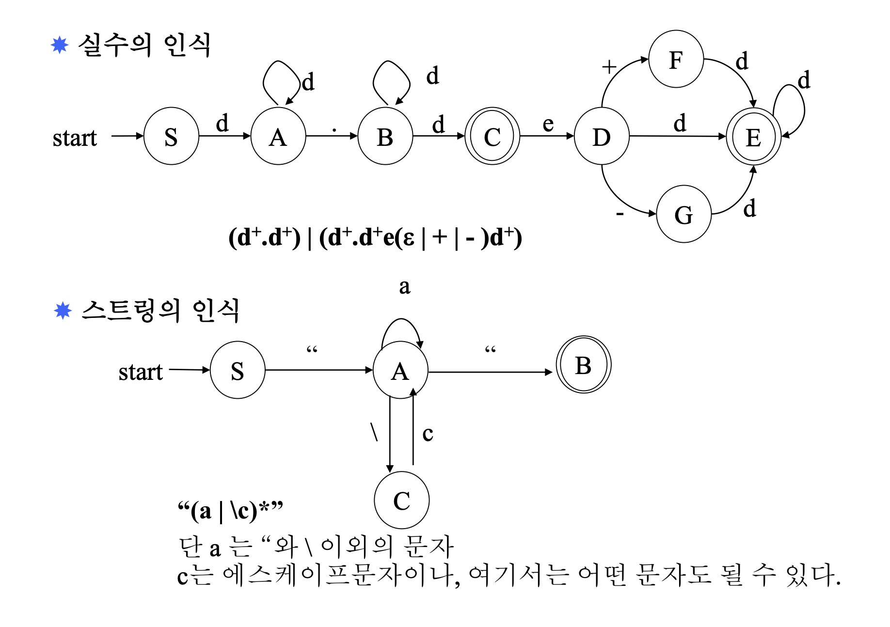 정의된 토큰을 인식할 때는 Finite State Automata를 사용한다.