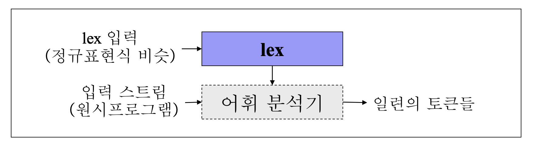 즉, Lex는 어휘분석기 때문에 도입된 어휘분석기를 생성하는 도구라고 생각하자.