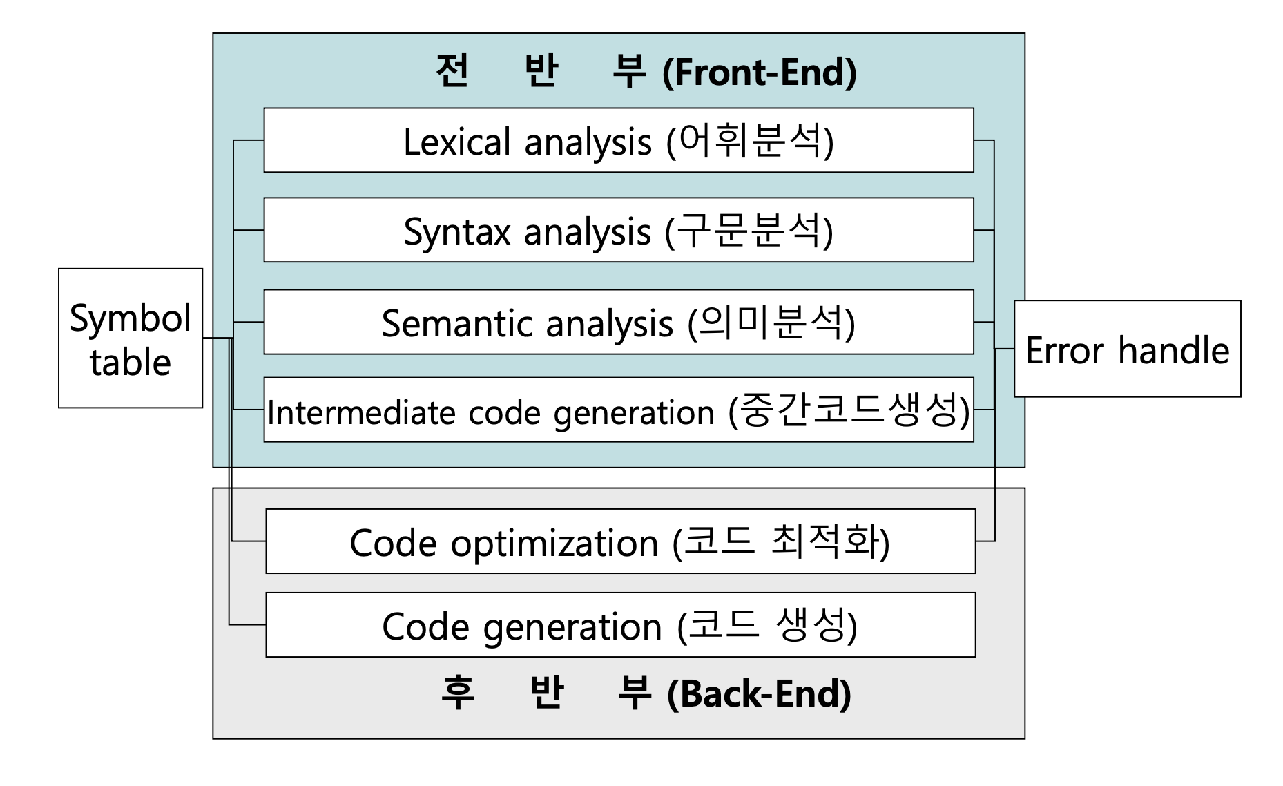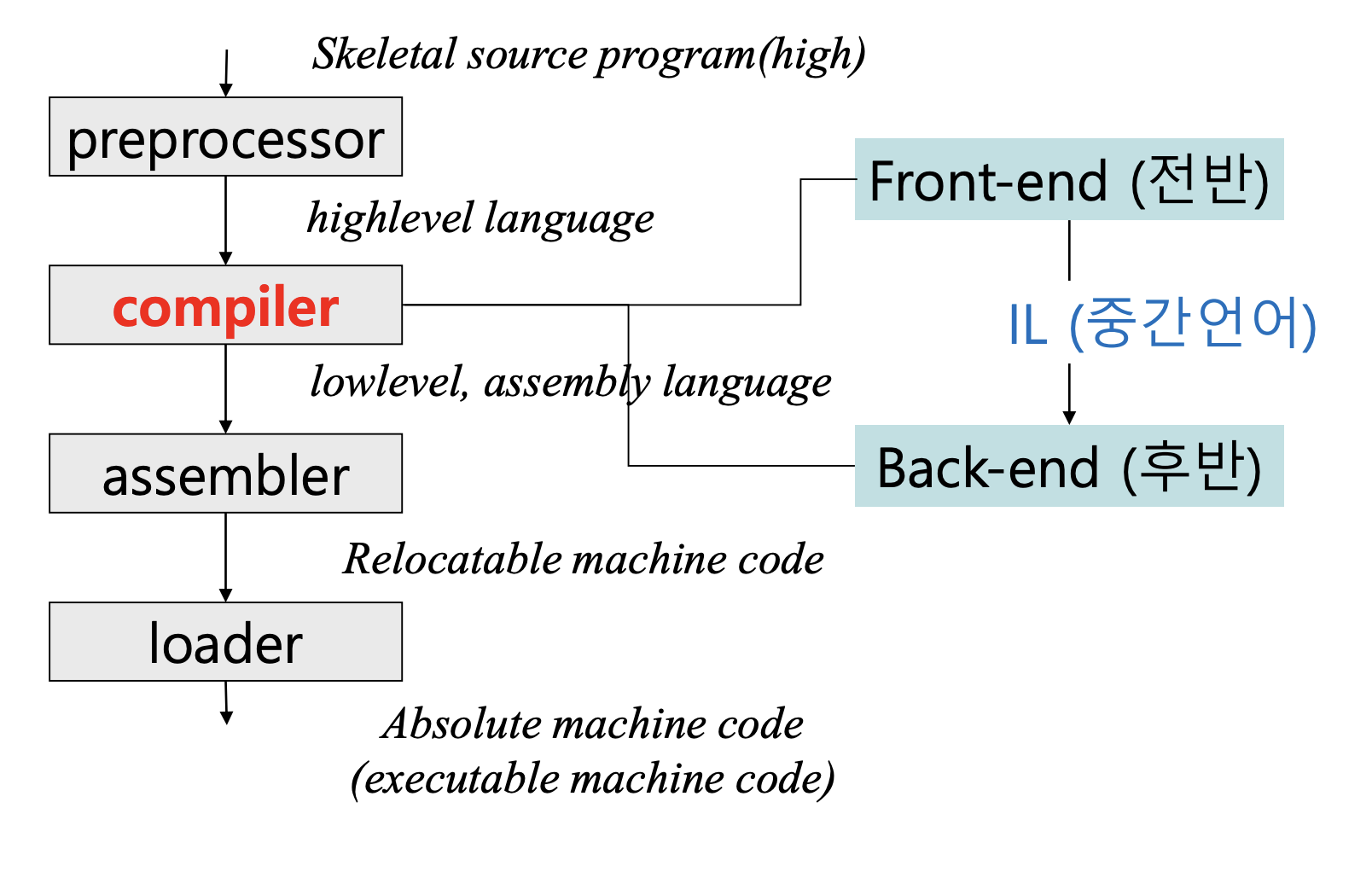 컴파일러는 어떤 언어로 쓰여진 프로그램을 읽어 다른 언어로 된 의미가 같은 프로그램으로 번역해주는 프로그램이다.