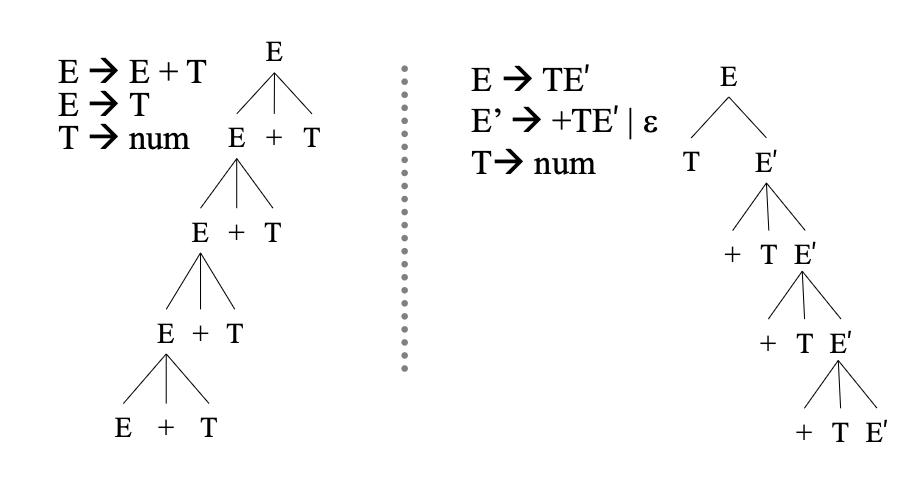 LL 파서에서는 Right-Recursion으로 문법을 정의하는게 유리하다.