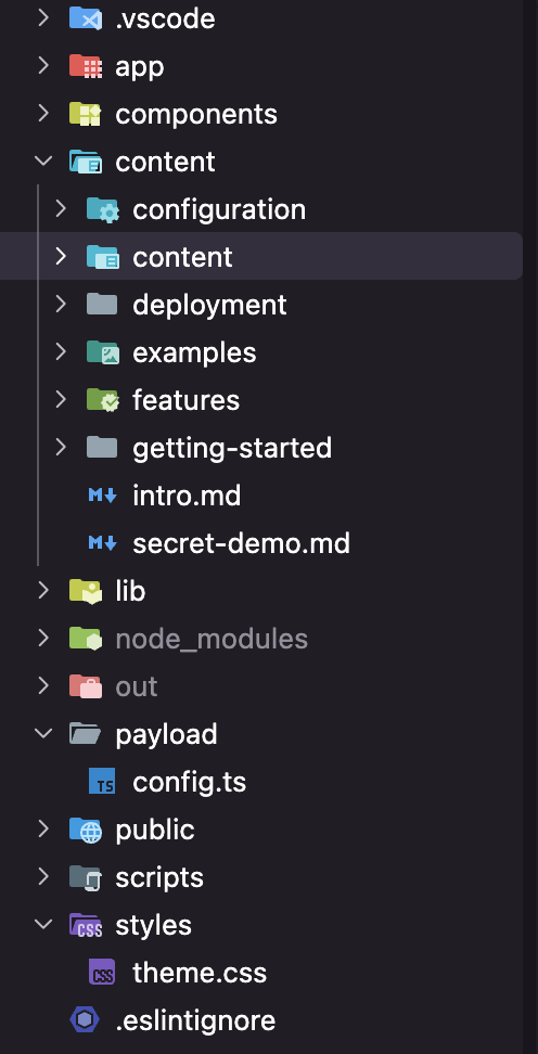 작성 후에는 payload 하위에 있는 config.ts를 content 하위에 작성한 구조대로 작성해주면 된다.