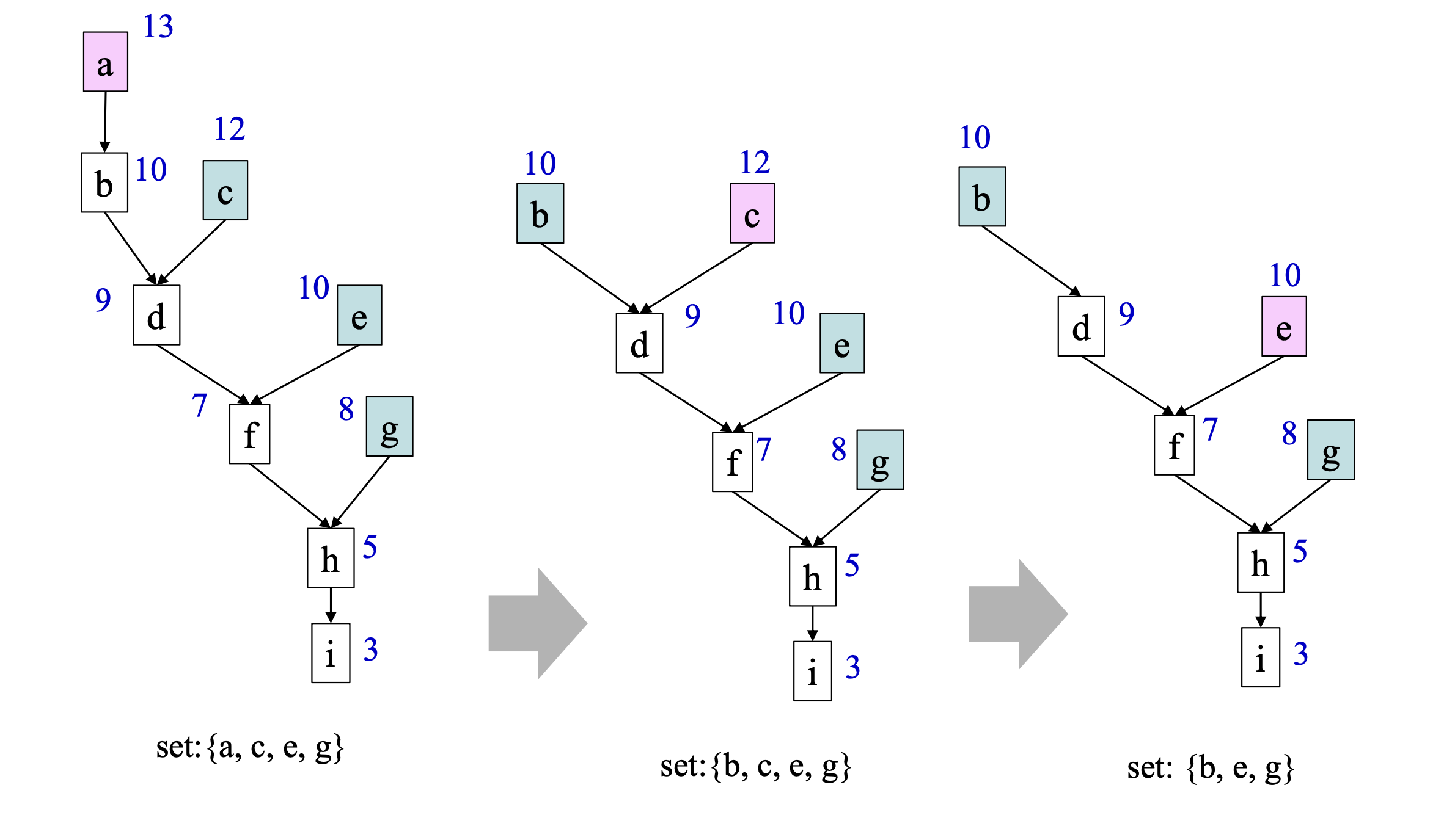 이 과정을 그래프의 모든 노드가 사라질 때 까지 반복한다.