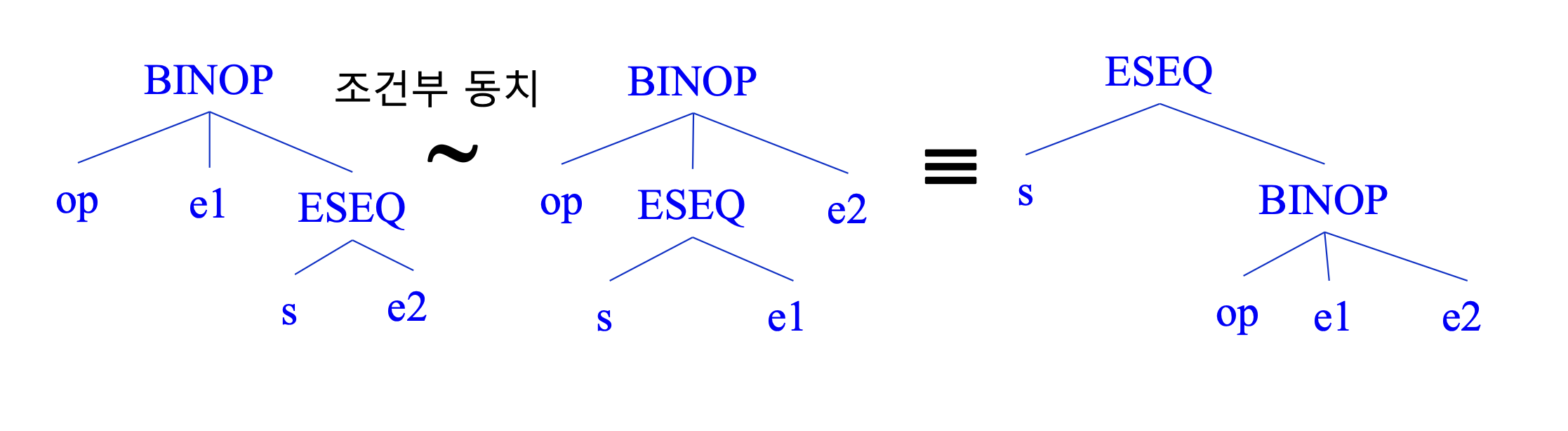 그러니 ESEQ를 트리의 가장 윗부분으로 끌어올려 코드를 순차적으로 만들어야 한다.