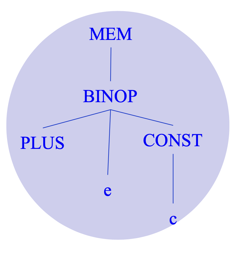 MEM / BINOP / PLUS / CONST 등의 노드로 트리를 표현한다.