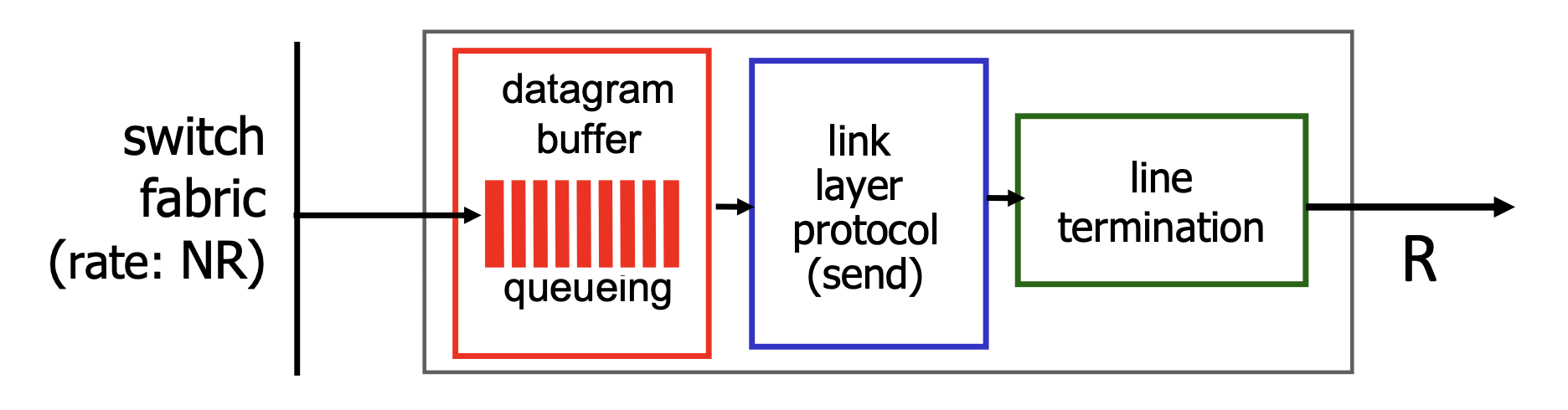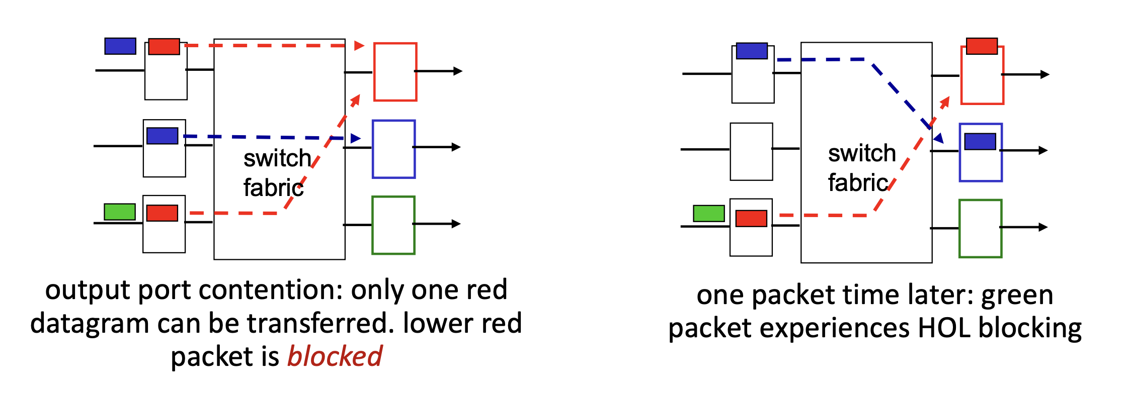 Switching이 완료되더라도 Output Port에 패킷이 몰려들면 여기서도 큐잉이 발생한다.