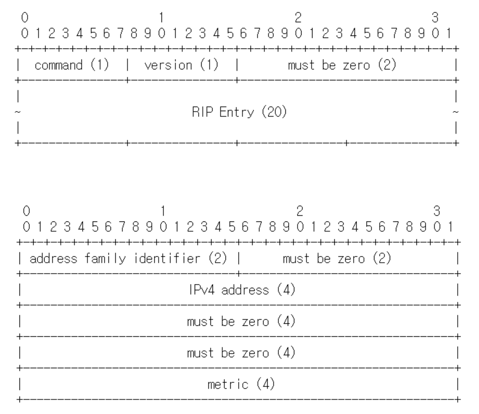 UDP 520번 포트로 데이터를 보낼 때 전송하는 비트 구조.