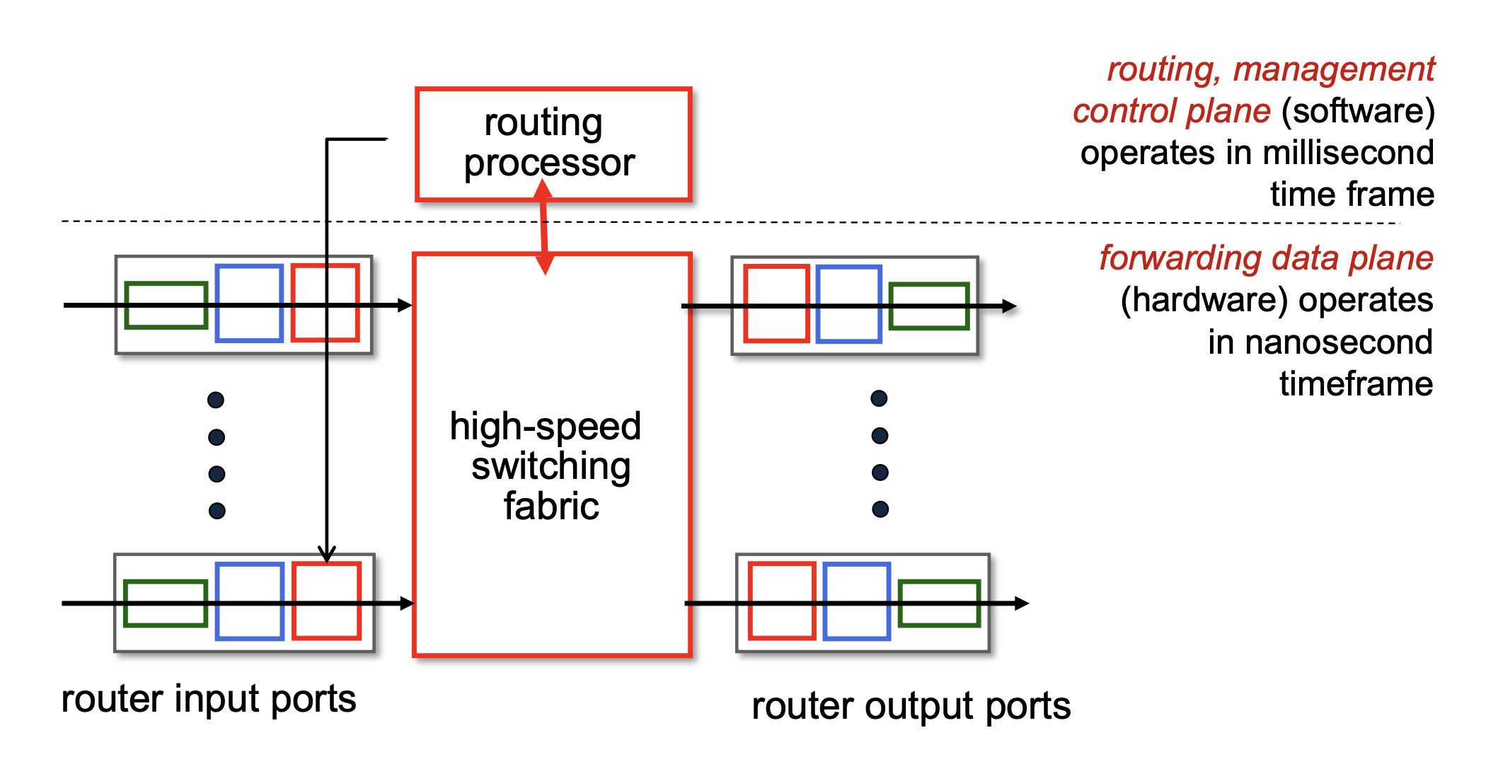 Input Ports, Output Ports, Switching Fabric으로 구성된다.