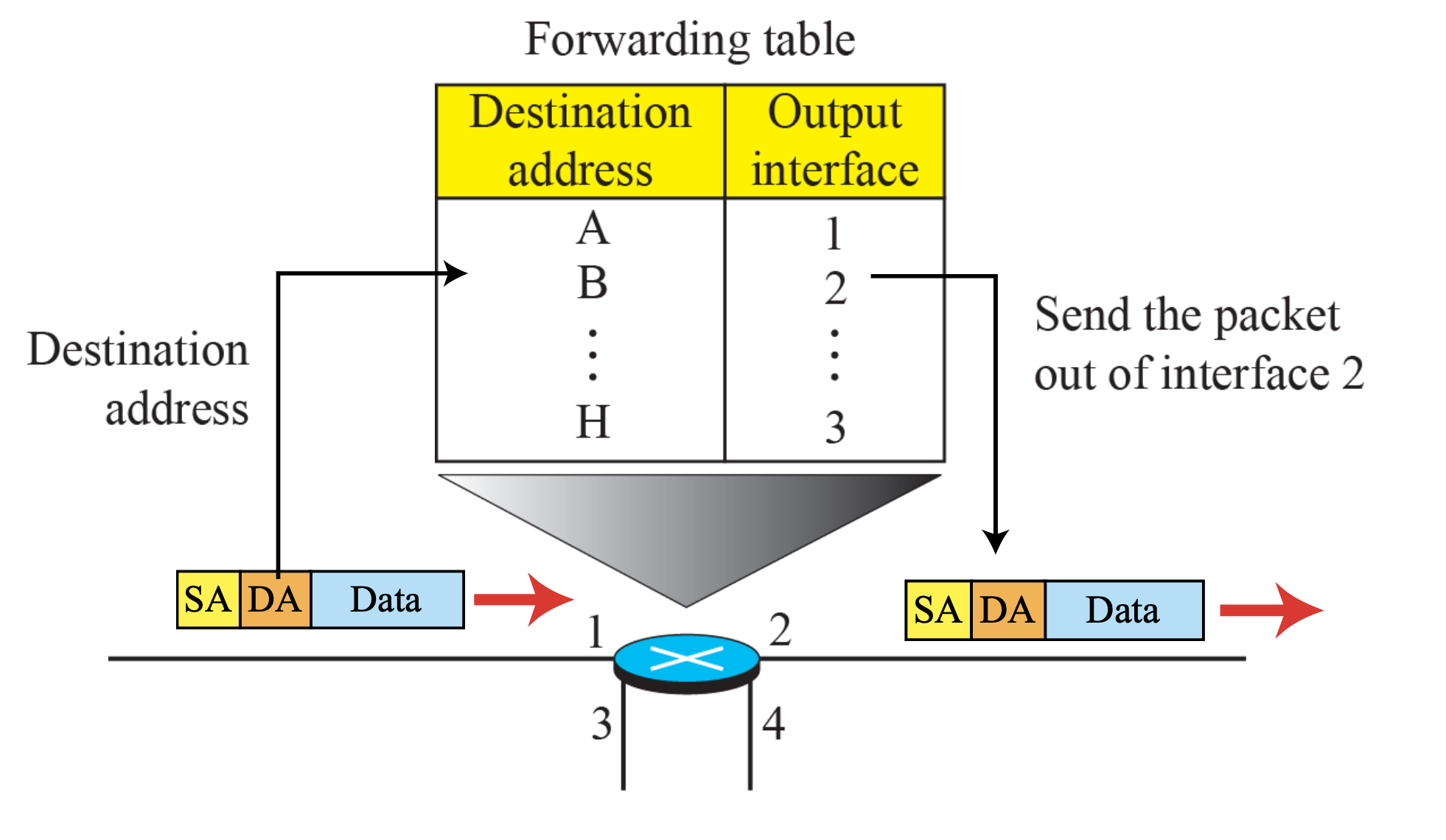 Forwarding Table을 검색해 어디로 보낼지 결정한다.