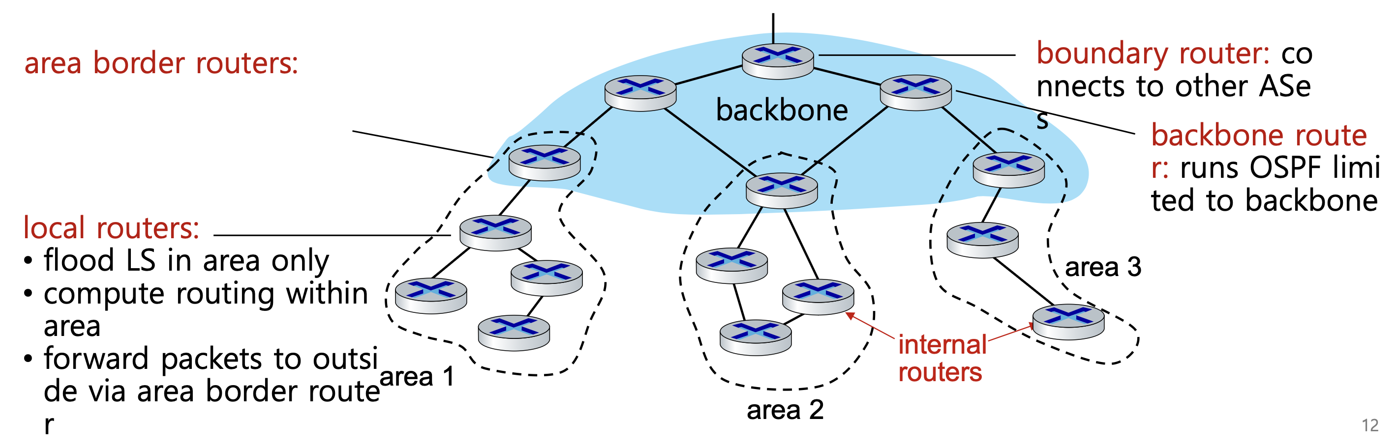 라우터가 너무 많으면 모든 라우터가 Topology를 가지는게 부담스러울 수 있음. AS 내부를 또 작은 구역으로 쪼갠다.