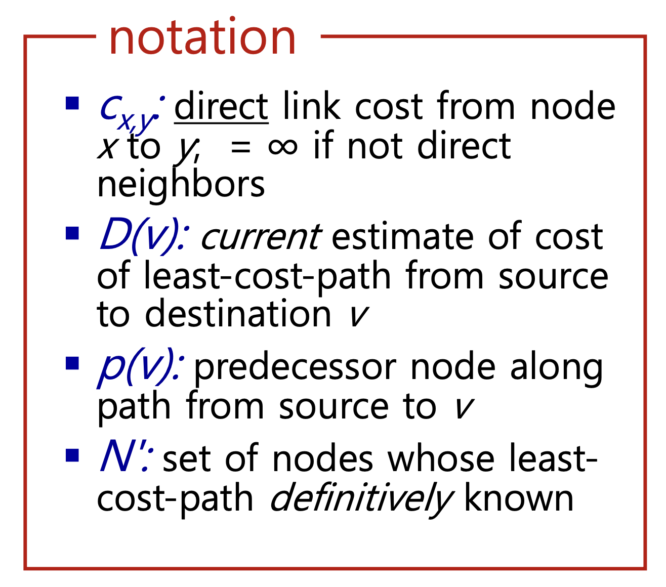 Distance Vector Algorithm - 이웃이 전해주는 정보를 믿고 계산한다.