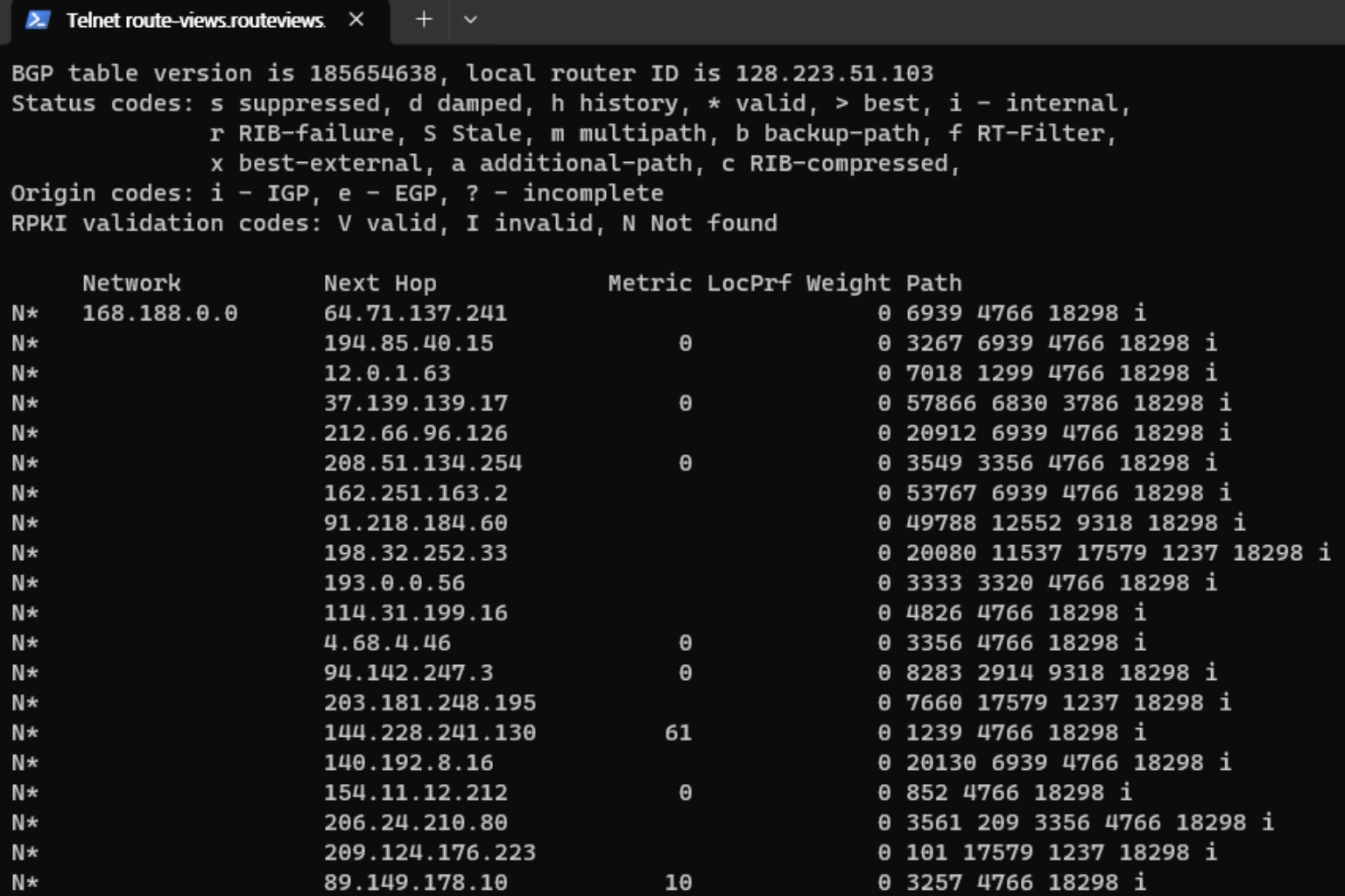 뒤에 있는 Path 부분이 AS-PATH를 나타낸다. 저 Path Vector 덕분에 루프가 발생하지 않음.