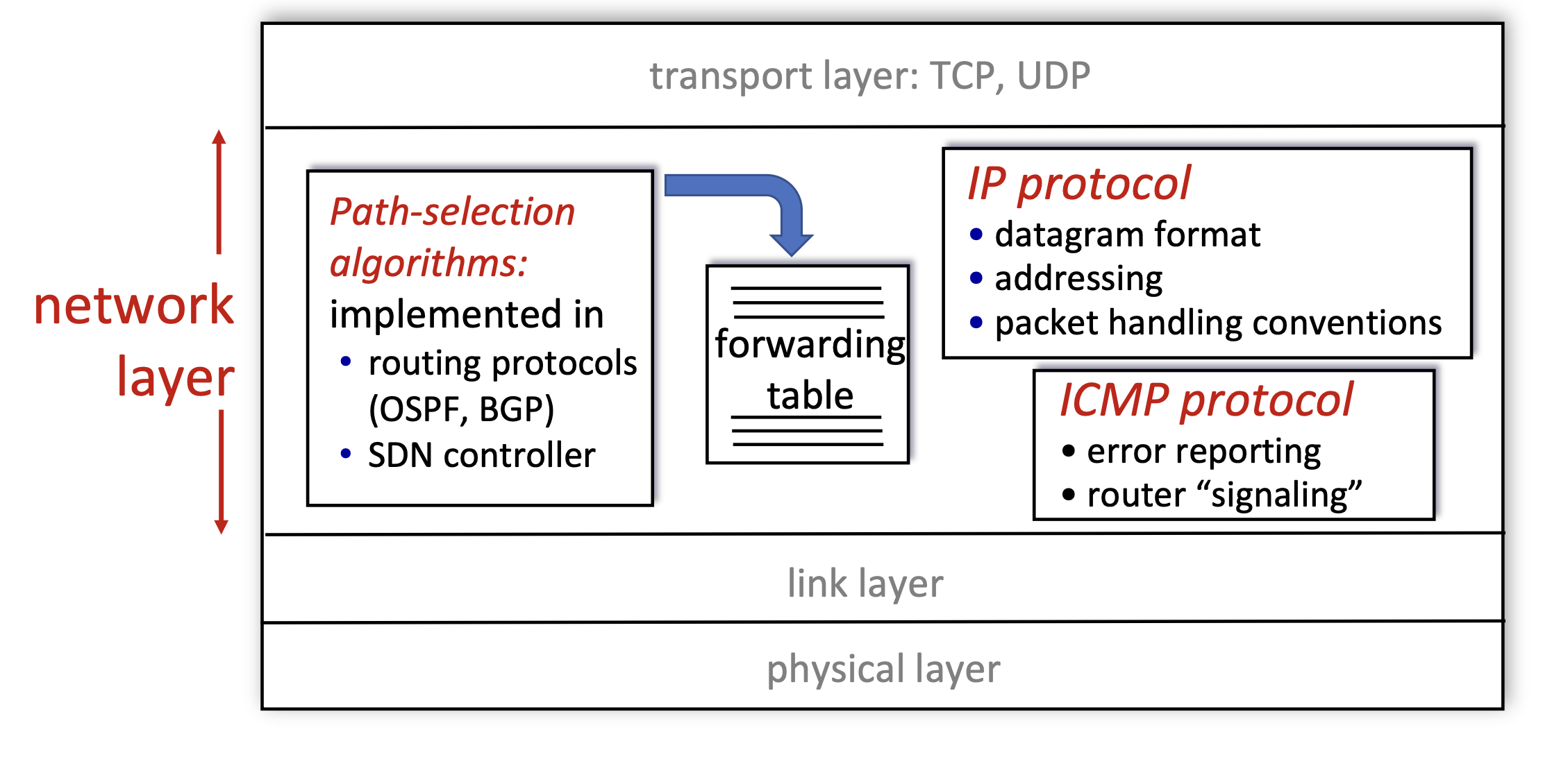 Path-Selection Algorithn 부분은 OSPF, BGP같은 프로토콜으로 Topology를 보고 경로를 계산해 Forwarding Table을 만든다.