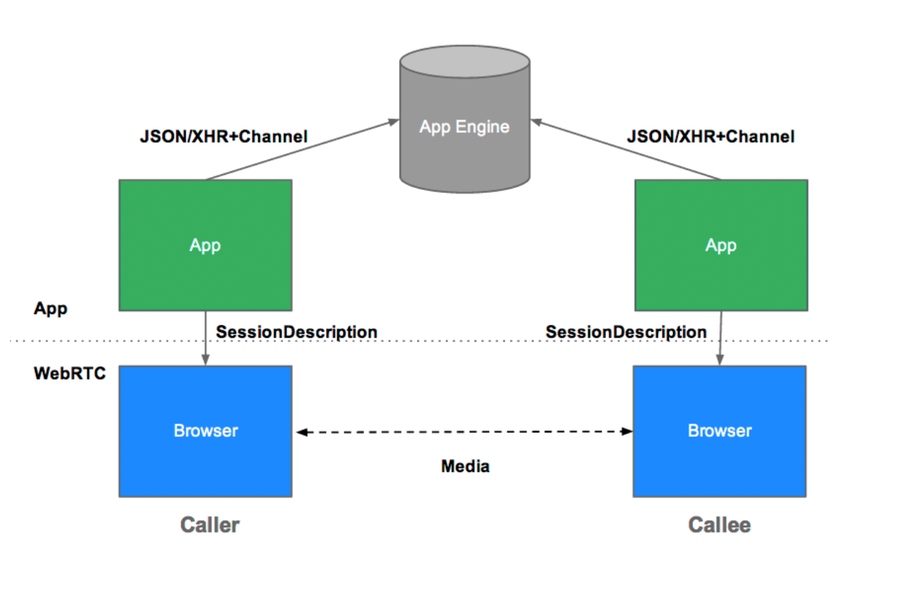 두 브라우저가 서로를 찾고 연결하려면 중계 서버의 도움이 필요한데.. App Engine을 중계 서버로 사용함.