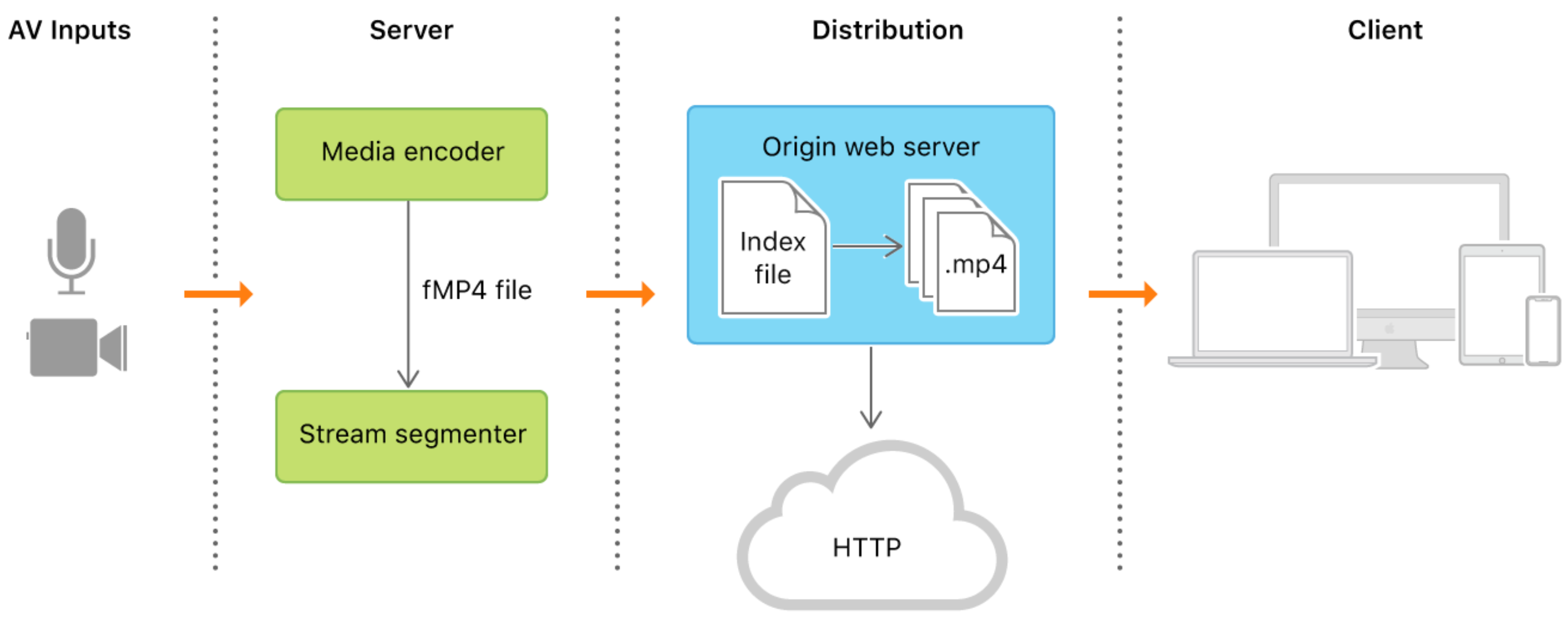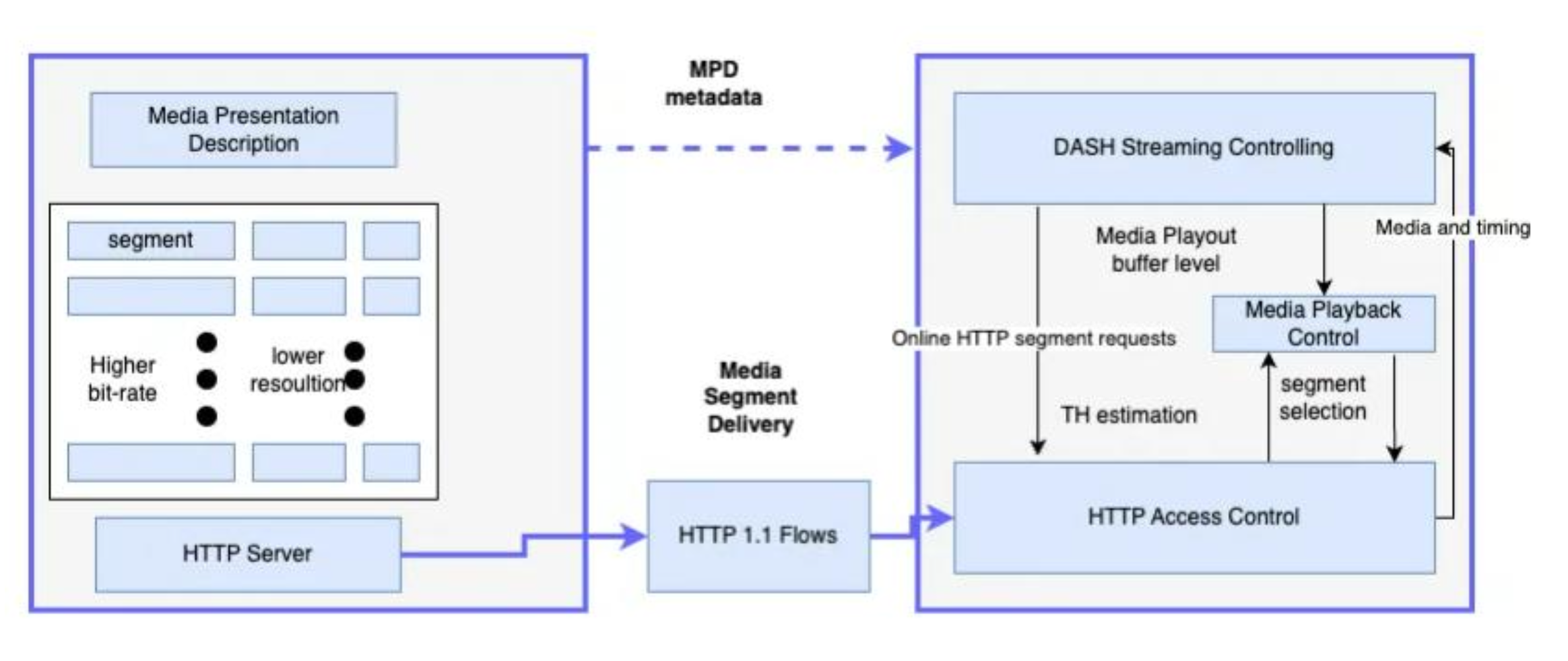 웹 서버를 사용해 미디어를 Segment로 쪼개고 파일을 다운로드하듯 전송함.