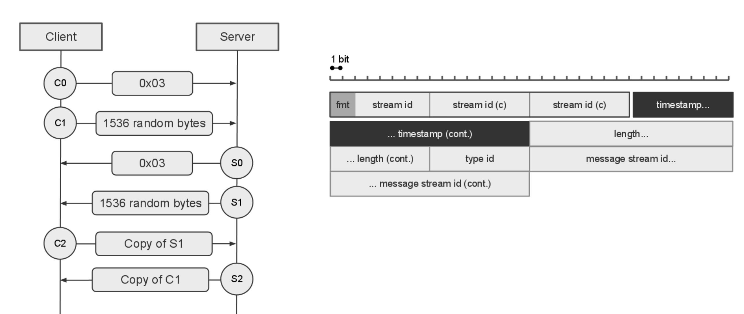 C0 / S0 - 클라이언트와 서버가 서로 RTMP 버전을 확인한다. (보통 0x03 사용)