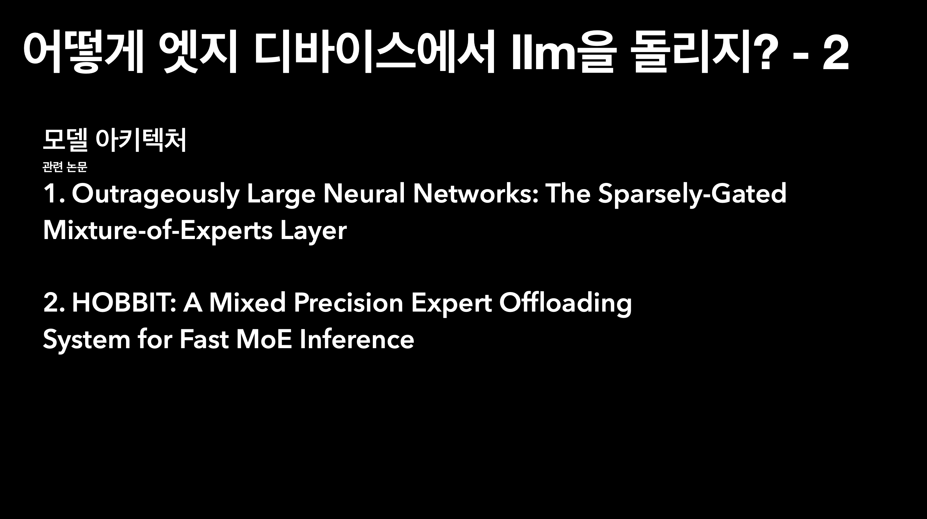 HOBBIT 외에도 MoE Infinity 등 Edge Device에서 llm을 수행하는 방법이 여러 가지 있으니.. 프로젝트 구현 단계에서 참고해 보면 좋겠습니다.