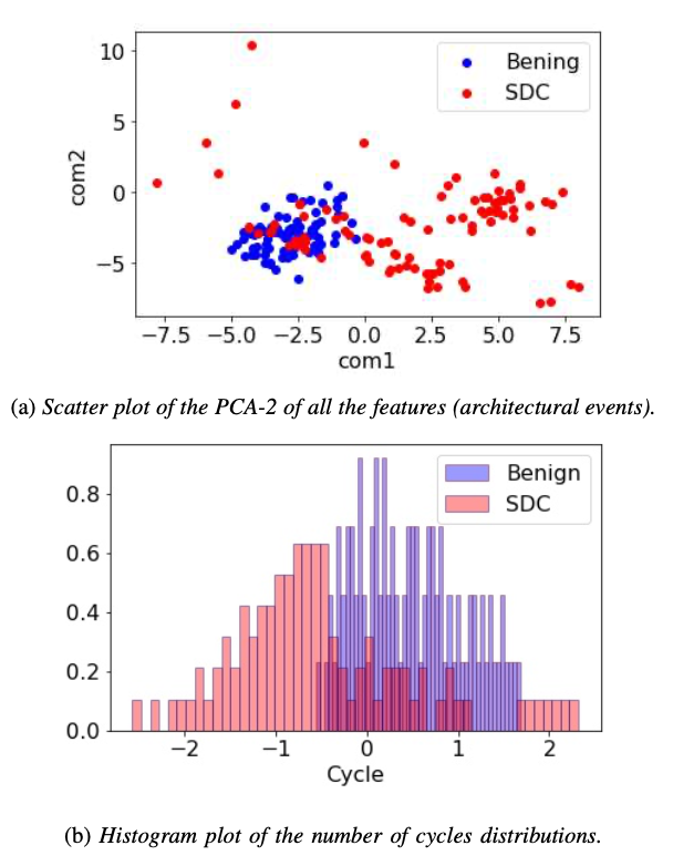 Principal Component Analysis 결과 SDC와 Benign은 정상 HPC 패턴에서 큰 차이가 있음.